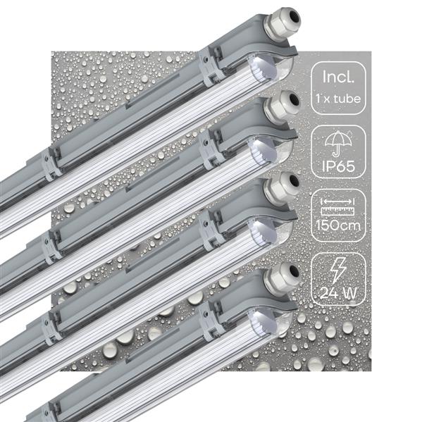 Ben je op zoek naar een complete verlichtingsoplossing voor opslagruimtes? Met deze 4-pack Proventa LED TL armaturen van 150 cm haal je direct helder en energiezuinig koud wit licht (6500 K) in huis. Perfect voor garages, werkplaatsen, magazijnen en meer. Deze set biedt niet alleen krachtig licht met 2880 lumen per armatuur , maar is ook waterdicht (IP65), eenvoudig te installeren en ontworpen voor langdurig gebruik.