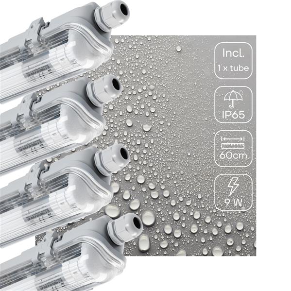 4 PACK - LED's Light LED TL armatuur 60 cm compleet met LED TL buis - 1080lm - 9W - 4000K