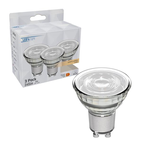 GU10 LED Spot MR16 - Warmwit 2700K - 4W - 345 Lumen - Glas - 3 Stuks