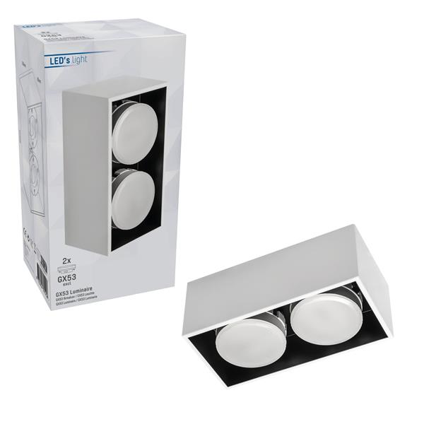Deze vierkante plafondspot met twee GX53 fittingen is perfect voor het creëren van de gewenste sfeer in elke ruimte van je huis. Je kunt elke lichtbron met een GX53 fitting gebruiken om het gewenste effect te bereiken. Houd er wel rekening mee dat de maximale belasting 12 watt is.