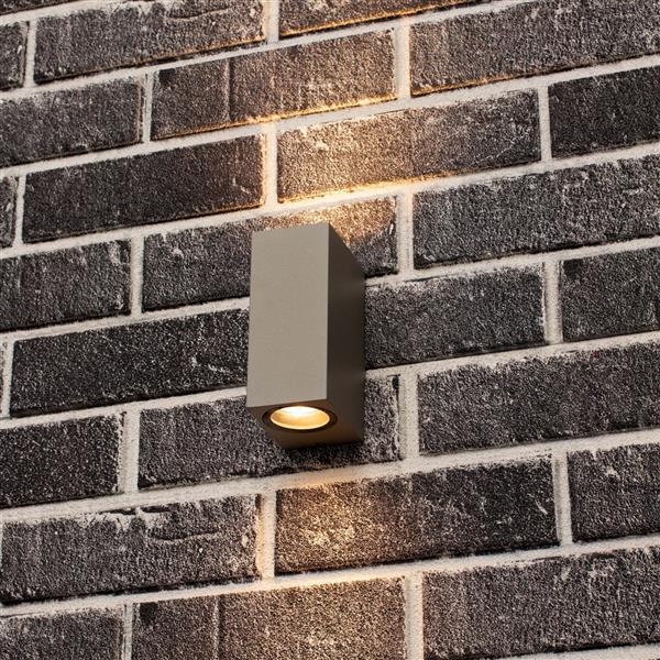 Door gebruik van zorgvuldig gekozen materialen waaronder aluminium en gehard glas, profiteer je van een extra lange levensduur. De muurlamp kun je aan je buitenmuur bevestigen. Ook kun je de wandlamp binnen gebruiken in je gang, hal of woonkamer. Iedere wandlamp is voorzien van twee GU10 fittingen waar je een lichtbron naar wens kunt plaatsen. Je kunt er bijvoorbeeld voor kiezen om een spotje met warm wit licht te plaatsen, koud wit licht of een slim GU10 lampje. Met een slim GU10 lampje kun je de lamp op afstand vanaf je mobiel bedienen. De muurlamp is uitgerust met twee GU10 fittingen die geschikt zijn voor ledlampen, halogeen, gloeilampen en smartlampen tot maximaal 35W.