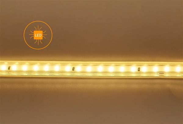De lichtslang heeft 120 LEDs per meter en geeft een warm wit licht van 3000K, perfect voor een gezellige sfeer tijdens de feestdagen of het hele jaar door. Met sproeidichte bescherming IP65 kun je de lichtslang zowel binnen als buiten gebruiken. De lichtslang werkt op 230V AC en is energiezuinig dankzij de LED technologie.