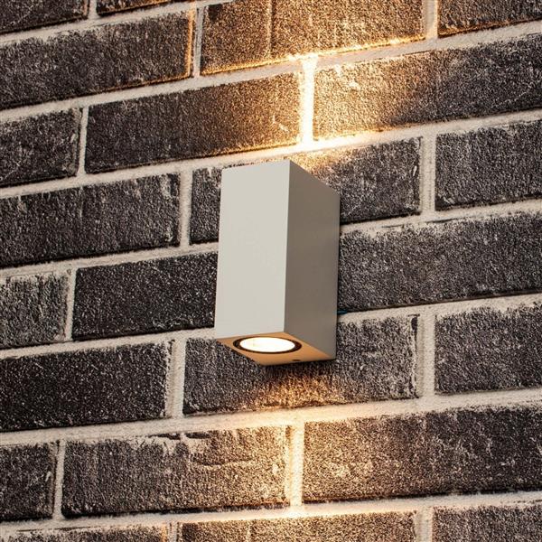 Door gebruik van zorgvuldig gekozen materialen waaronder aluminium en gehard glas, profiteer je van een extra lange levensduur. De muurlamp kun je aan je buitenmuur bevestigen. Ook kun je de wandlamp binnen gebruiken in je gang, hal of woonkamer. Iedere wandlamp is voorzien van twee GU10 fittingen waar je een lichtbron naar wens kunt plaatsen. Je kunt er bijvoorbeeld voor kiezen om een spotje met warm wit licht te plaatsen, koud wit licht of een slim GU10 lampje. Met een slim GU10 lampje kun je de lamp op afstand vanaf je mobiel bedienen. De muurlamp is uitgerust met twee GU10 fittingen die geschikt zijn voor ledlampen, halogeen, gloeilampen en smartlampen tot maximaal 35W.