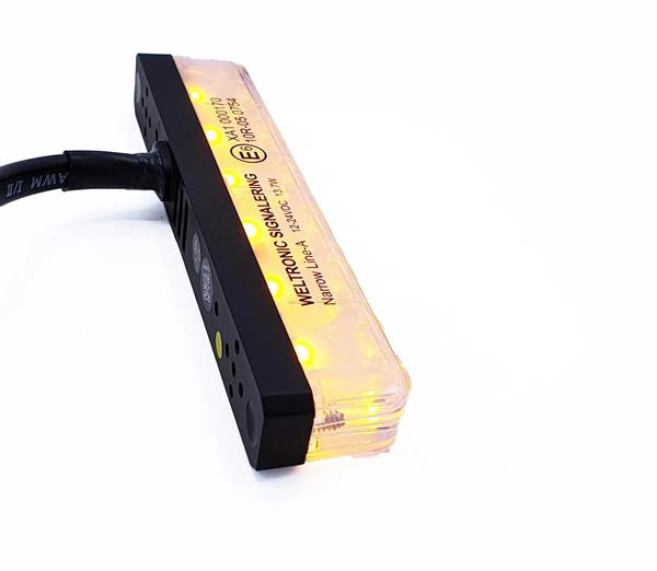De Weltronic Narrow Line platte & compacte grill flitser is een van de meest smalle grill flitsers verkrijgbaar op de Markt. Naast dat de Narrow Line ECE R65 is gekeurd heeft de Narrow line flitser een ECE R10 certificering, dit wil zeggen dat hij volgens ECE regelgeving electronisch ontstoord is.