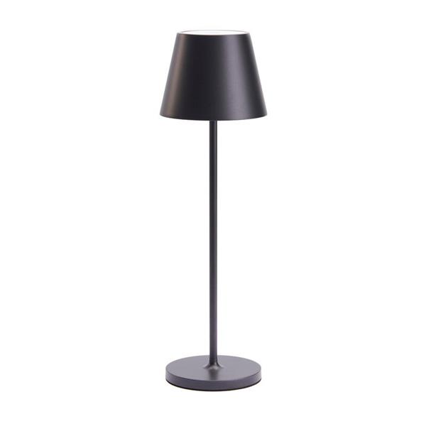 Deze moderne LED tafellamp in antracietkleur is een handige en stijlvolle toevoeging aan je interieur. De lamp heeft een oplaadbare batterij die tot wel 9 uur meegaat op vol vermogen. Je kunt de lamp dus gemakkelijk verplaatsen zonder dat je gebonden bent aan een stopcontact.
